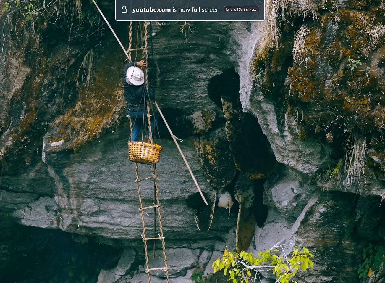 As the sun rises, the team approaches the cliff face. Long bamboo poles are assembled, and handmade rope ladders—woven from local materials—are secured to rocks above the hive. The kuiche begins his descent, sometimes hanging hundreds of feet above the ground with only these traditional ropes between him and disaster.